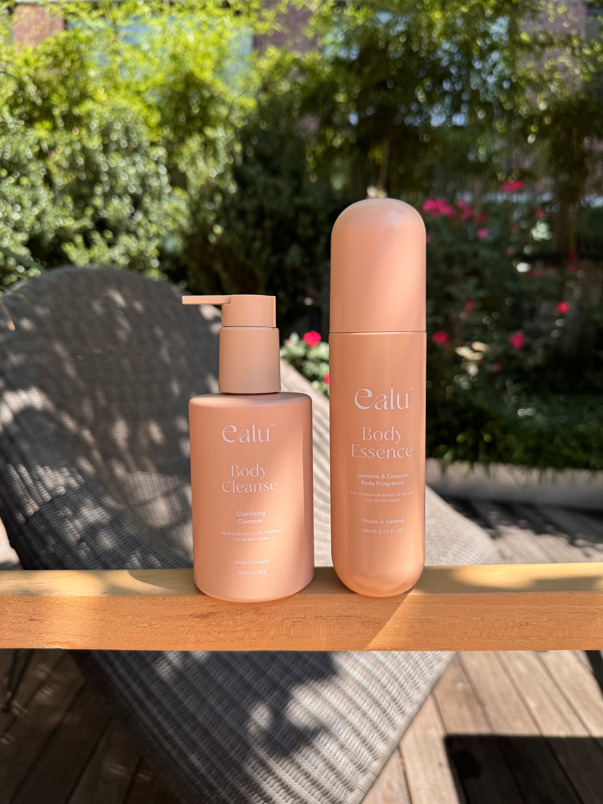 Body Cleanse: Aqua (Water), Sodium C14-16 Olefin Sulfonate, Parfum (Fragrance), Cocamide DEA, Cocamidopropyl Betaine, Glycolic Acid, Ceteareth-60 Myristyl Glycol, Aminomethyl Propanol, Panthenol, Sodium Benzoate, Potassium Sorbate, Hydrolysed Wheat Protein, Tocopherol, Benzyl Salicylate, Coumarin, Hexyl Cinnamal, Helianthus Annuus (Sunflower) Seed Oil, Citronellol, Linalool - Body Essence: Aqua (Water), Alcohol Denat., Parfum (Fragrance), PEG-40 Hydrogenated Castor Oil, Chamomilla Recutita (Matricaria) Flower Extract, Tocopherol, Helianthus Annuus (Sunflower) Seed Oil, Glycerin, Sodium Benzoate, Potassium Sorbate, Benzyl Alcohol, Cinnamal, Citral, Citronellol, Coumarin, Hexyl Cinnamal, Limonene, Benzyl Salicylate, Eugenol, Geraniol, Hydroxycitronellal, Linalool: